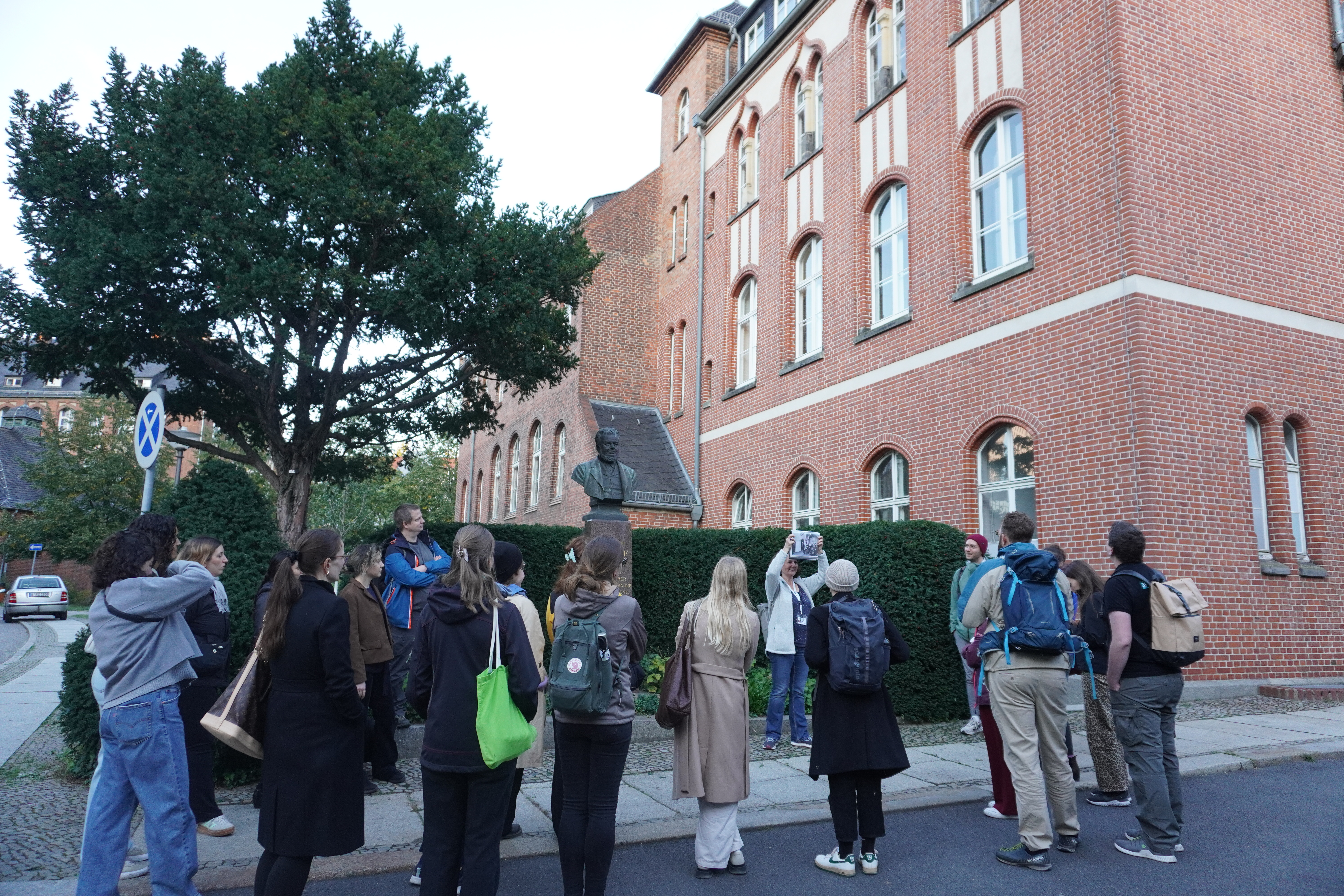 Zum Abschluss des Tages machte sich die Gruppe zu Fuß auf den Weg zum Campus Charité Mitte, wo eine geführte historische Tour über das Gelände stattfand.